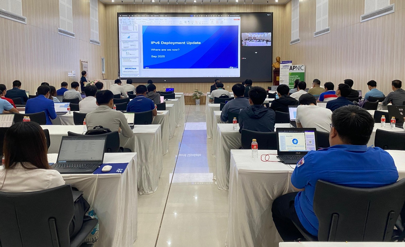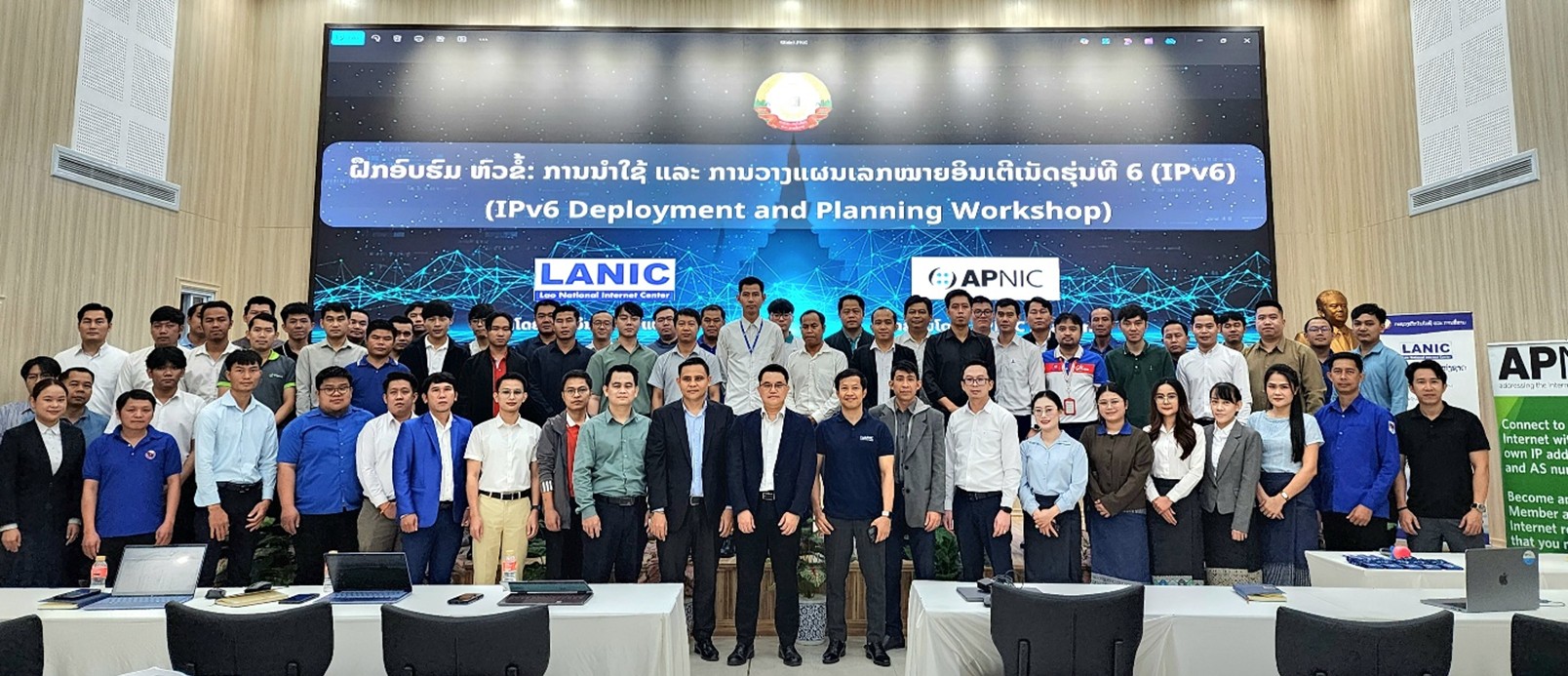 ໃນວັນທີ 24 ກັນຍາ 2025, ທີ່ສູນອິນເຕີເນັດ ແຫ່ງຊາດ ໄດ້ຈັດຝຶກອົບຮົມ ຫົວຂໍ້ ການນຳໃຊ້ ແລະ ການວາງແຜນເລກໝາຍອິນເຕີເນັດ ຮຸ່ນທີ 6 (IPv6 Deployment and Planning Workshop) ກ່າວເປີດຝຶກອົບຮົມໂດຍ ທ່ານ ໄຊສົມຫວັງ ສຸວັນນະວົງ ຮອງຫົວໜ້າສູນອິນເຕີເນັດ ແຫ່ງຊາດ.