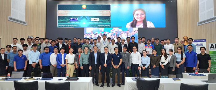 ຈາກນັ້ນ, ທ່ານ ນາງ Shane Hermoso ຫົວໜ້າຄູຝຶກ ຈາກສູນເຄືອຂ່າຍຂໍ້ມູນຂ່າວສານ ອາຊີ-ປາຊີຟິກ (Asia-Pacific Network Information Centre, APNIC) ໄດ້ກ່າວມີຄໍາເຫັນຕໍ່ການຝຶກອົບຮົມໃນຄັ້ງນີ້ ຜ່ານທາງກອງປະຊຸມທາງໄກ ແລະ ທ່ານ ວາຊິຣະ ມີສະຫວັດ ຄູຝຶກປະຈຳລາວເປັນຜູ້ບັນລະຍາຍຫຼັກ, ໂດຍມີວິຊາການເຕັກນິກ ເຂົ້າຮ່ວມຝຶກອົບຮົມ ຈາກບັນດາກົມ/ສູນ ກະຊວງ ເຕັກໂນໂລຊີ ແລະ ການສື່ສານ ແລະ ບັນດາກະຊວງ ອົງການ ທີ່ກ່ຽວຂ້ອງ, ມີບັນດາບໍລິສັດໂທລະຄົມມະນາຄົມ ແລະ ອິນເຕີເນັດ, ບັນດາບໍລິສັດຜູ້ສະໜອງອຸປະກອນ, ບັນດາບໍລິສັດຜູ້ໃຫ້ບໍລິການດ້ານດິຈິຕອນ ແລະ ບັນດາທະນາຄານທຸລະກິດ ເຂົ້າຮ່ວມ ຈຳນວນຫຼາຍກວ່າ 80 ທ່ານ.