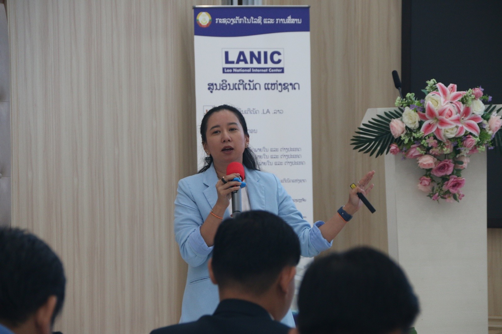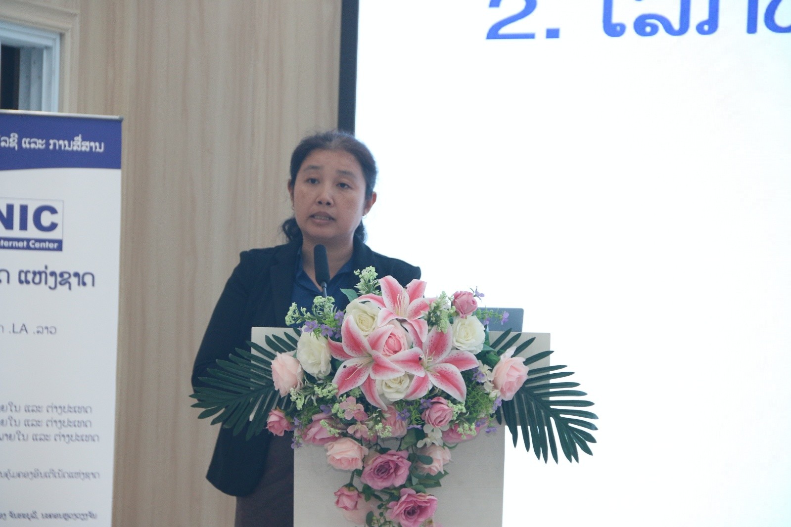 ກອງປະຊຸມດັ່ງກ່າວ ໄດ້ມີຜູ້ບັນລະຍາຍ ຈາກສູນອິນເຕີເນັດ ແຫ່ງຊາດ (LANIC) ໂດຍທ່ານ ນາງ ສຸວັນນີ ໄຊສົງຄາມ ຫົວໜ້າພະແນກລະຫັດຊື່ອິນເຕີເນັດສູງສຸດແຫ່ງຊາດ ໄດ້ຂື້ນນຳສະເໜີ ຫົວຂໍ້ ການພັດທະນາ ແລະ ສົ່ງເສີມການນຳໃຊ້ ຊັບພະຍາກອນອິນເຕີເນັດ ໃນ ສປປ ລາວ ແລະ ທ່ານ ສຸລິສັກ ພົມມະແສນ ຫົວໜ້າພະແນກສູນກາງອິນເຕີເນັດ ນຳສະເໜີ ຫົວຂໍ້ ການພັດທະນາໂຄງລ່າງພື້ນຖານຂອງ ສປປ ລາວ.