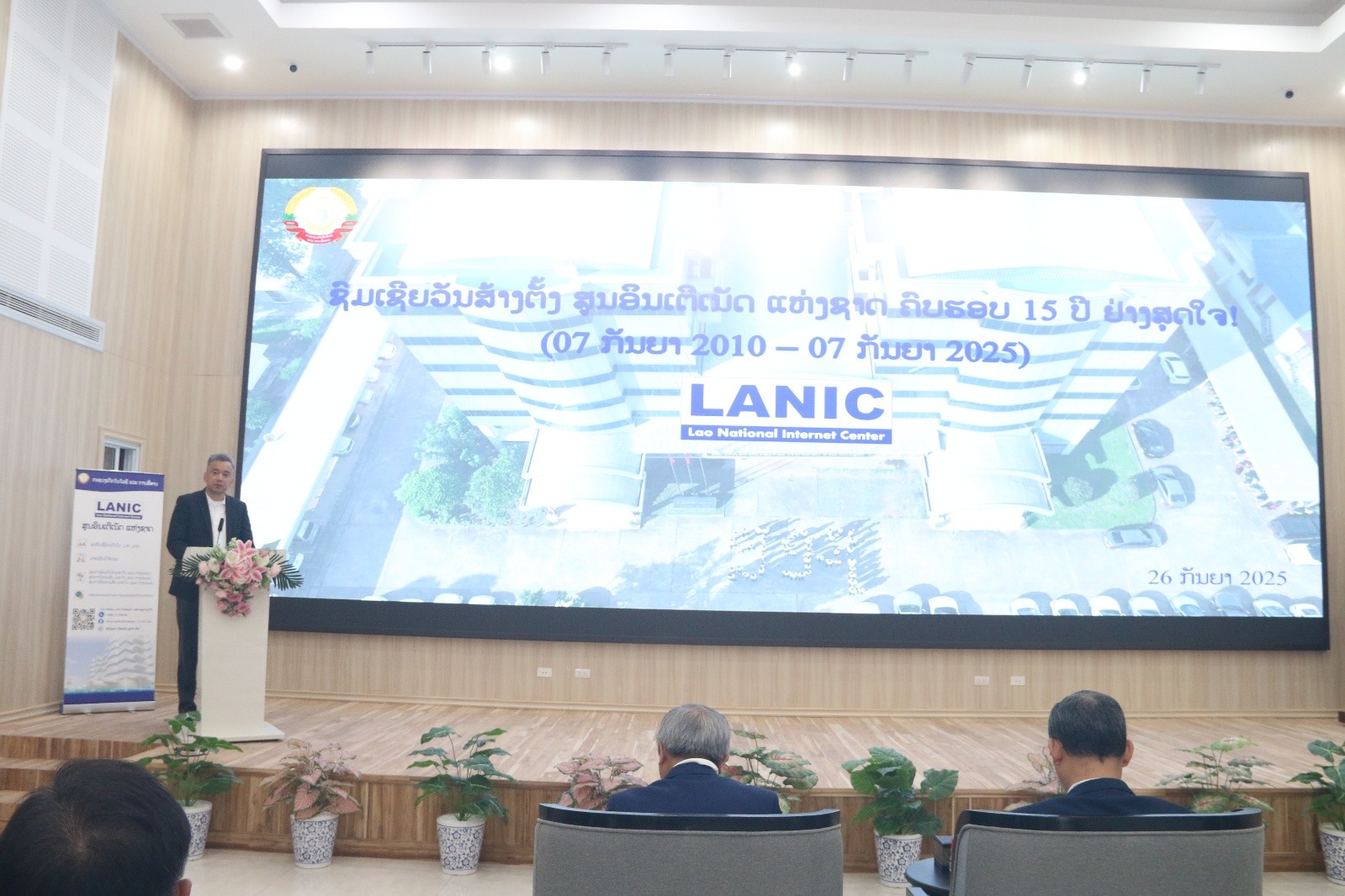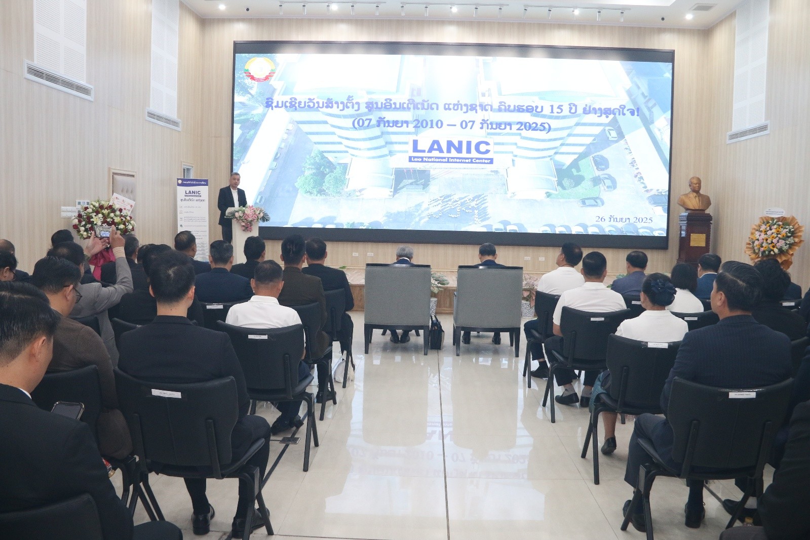 ໃນວັນທີ 26 ກັນຍາ 2025, ທີ່ສູນອິນເຕີເນັດ ແຫ່ງຊາດ ໄດ້ຈັດພິທີສະເຫຼີມສະຫຼອງ ການສ້າງຕັ້ງສູນອິນເຕີເນັດ ແຫ່ງຊາດ ຄົບຮອບ 15 ປີ, ໂດຍໃຫ້ກຽດເຂົ້າຮ່ວມໂດຍ ທ່ານ ບັນດິດ ສຈ ບໍ່ວຽງຄຳ ວົງດາລາ ລັດຖະມົນຕີກະຊວງເຕັກໂນໂລຊີ ແລະ ການສື່ສານ, ທ່ານ ແກ້ວວິສຸກ ໂສລະພົມ ຮອງລັດຖະມົນຕີກະຊວງເຕັກໂນໂລຊີ ແລະ ການສື່ສານ, ສູນອິນເຕີເນັດແຫ່ງຊາດ ສສ ຫວຽດນາມ (VNNIC), ມີບັນດາຫົວໜ້າກົມ/ສູນ ພາຍໃນກະຊວງ ຕສ, ຕາງໜ້າກະຊວງການເງິນ, ທະນາຄານ ແຫ່ງ ສປປ ລາວ, ບັນດາບໍລິສັດ ຜູ້ໃຫ້ບໍລິການໂທລະຄົມມະນາຄົມ ແລະ ອິນເຕີເນັດ, ບັນດາທະນາຄານທຸລະກິດ ພ້ອມດ້ວຍອະດີດຫົວໜ້າສູນ, ຄະນະສູນ ແລະ ພະນັກງານປະຈຸບັນ ແລະ ອະດີດພະນັກງານສູນອິນເຕີເນັດ ແຫ່ງຊາດ ເຂົ້າຮ່ວມຢ່າງພ້ອມພຽງ. ໂດຍກ່າວຈຸດປະສົງ ແລະ ກ່າວເປີດງານ ໂດຍ ທ່ານ ມີນາໄຊ ພິລາວົງ ຫົວໜ້າສູນອິນເຕີເນັດ ແຫ່ງຊາດ.