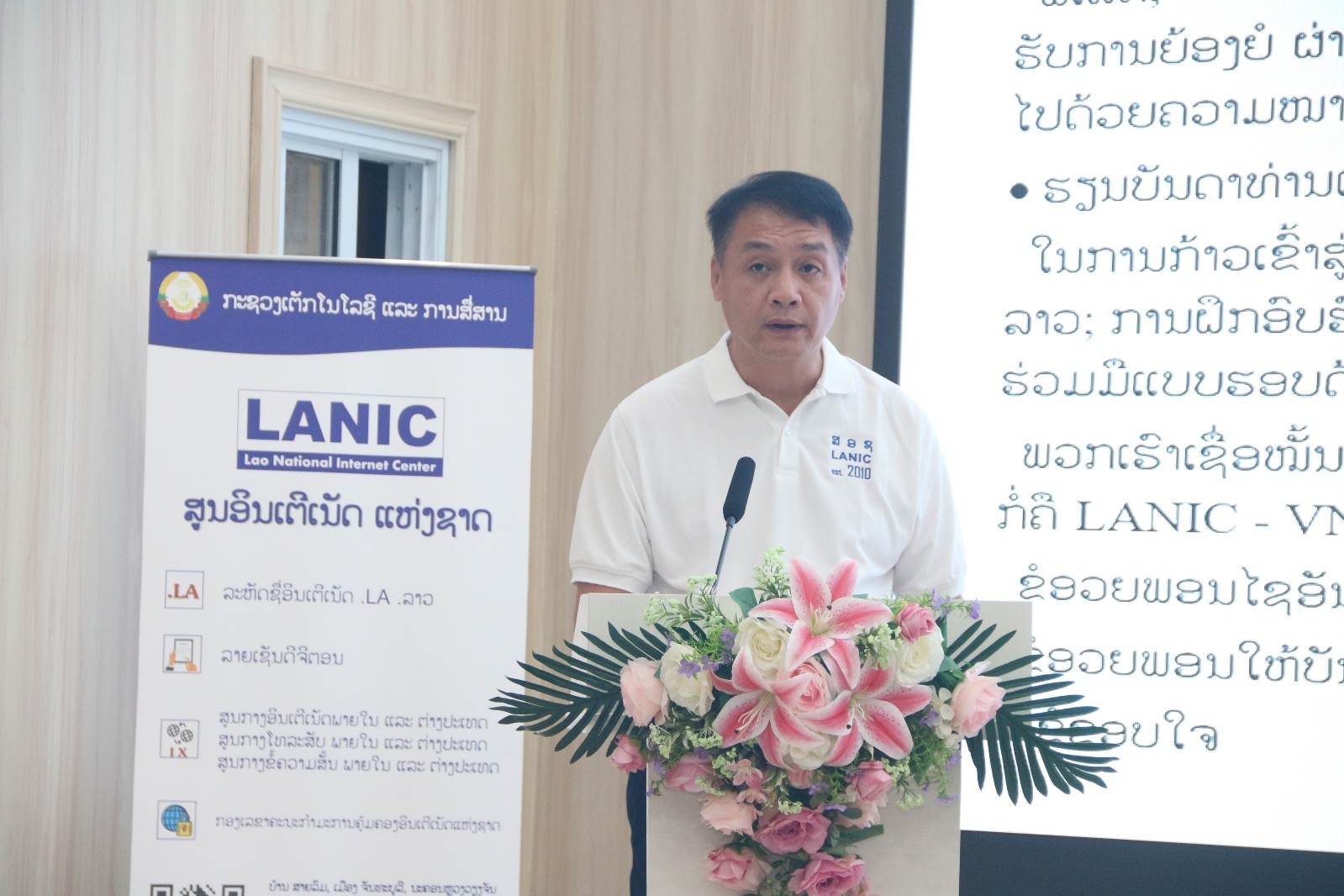ພິທີສະເຫຼີມສະຫຼອງດັ່ງກ່າວ ໄດ້ຮັບກຽດຈາກ ທ່ານ ທ່ານ ເລ ງອກ ດຶກ (Mr. Le Ngoc Duc) ປະທານຄະນະບໍລິຫານງານ ສູນອິນເຕີເນັດແຫ່ງຊາດ ສສ ຫວຽດນາມ (VNNIC) ເຂົ້າຮ່ວມ ພ້ອມກ່າວປະກອບຄໍາເຫັນຕໍ່ຜົນສໍຳເລັດຂອງ ສູນອິນເຕີເນັດ ແຫ່ງຊາດ ແລະ ການຮ່ວມມືລະຫວ່າງ ສູນອິນເຕີເນັດ ແຫ່ງຊາດ ສປປ ລາວ ແລະ ສູນອິນເຕີເນັດ ແຫ່ງຊາດ ສສ ຫວຽດນາມ ໃນໄລຍະ 15 ປີ ຜ່ານມາ ແລະ ການຮ່ວມມືໃນໄລຍະຕໍ່ໜ້າ.